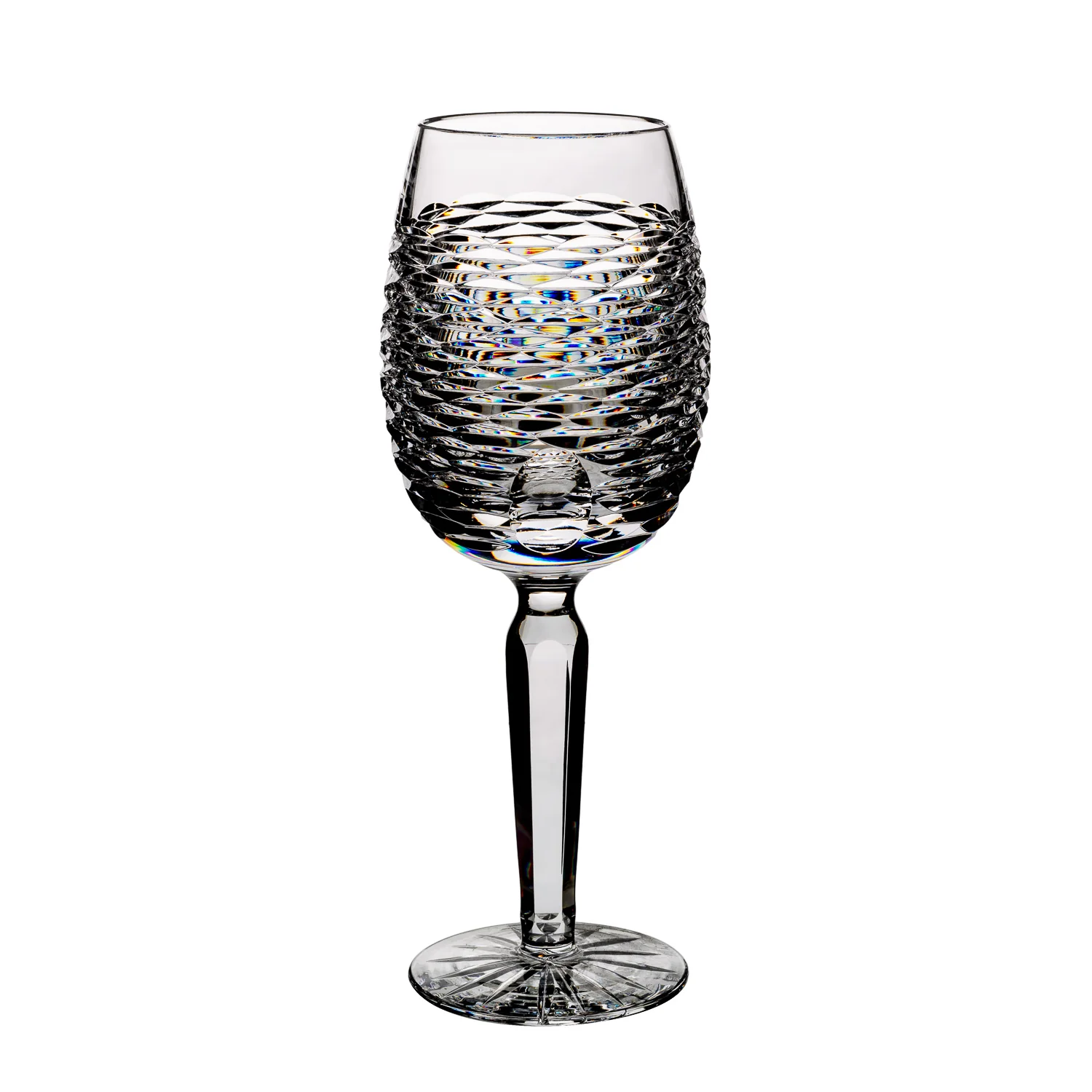 This elegant and unique hand-cut goblet from the renowned Dingle Crystal Craftsmen is the perfect addition to your wine-loving home. With its large vessel and smooth curved shape, it is sure to mesmerize your guests with its regal beauty. Enjoy your favorite wine in luxury with this timeless classic.